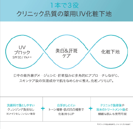 “新しいシミをつくらせない” クリニック品質の薬用 UV化粧下地。